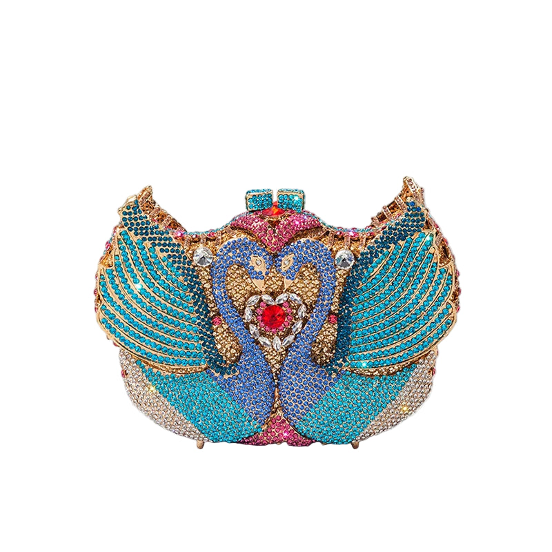 The Peyton clutch by Alizekerr represents sophisticated evening elegance with its hard-structured design and metallic exterior. This women's dress clutch features a secure hasp closure enhanced by decorative chains and diamond accents, making it an ideal companion for formal occasions and parties. Crafted with a synthetic leather lining and solid construction, the Peyton delivers both durability and refined style. The compact clutch silhouette pairs seamlessly with evening wear, while the metallic finish and embellished details elevate any formal ensemble. Model AK-241127 combines practical functionality with luxurious aesthetics for the discerning woman seeking a statement accessory.